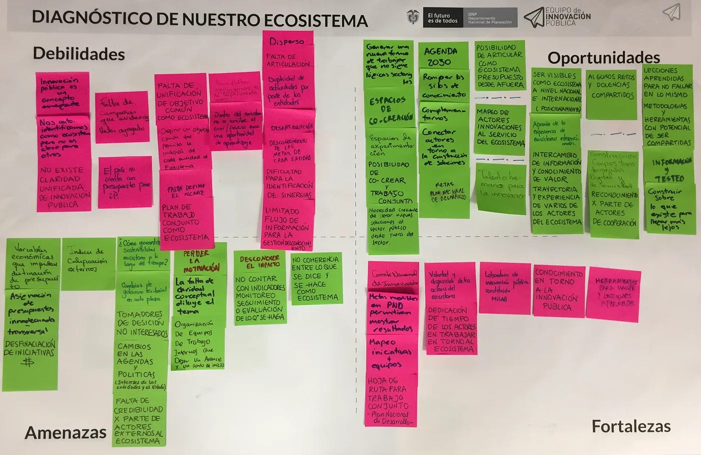 Actualmente, la atención está puesta en el Departamento Nacional de Planeación de Colombia — DNP y en el Equipo de Innovación pública (EiP), que, en muy poco tiempo, lograron no sólo re-instalar el tema y prácticas a nivel nacional, sino que lograron tal vez lo más difícil, crear institucionalidad validada para empujar procesos de innovación con un ingrediente escaso al momento de conducir procesos complejos: con poder.