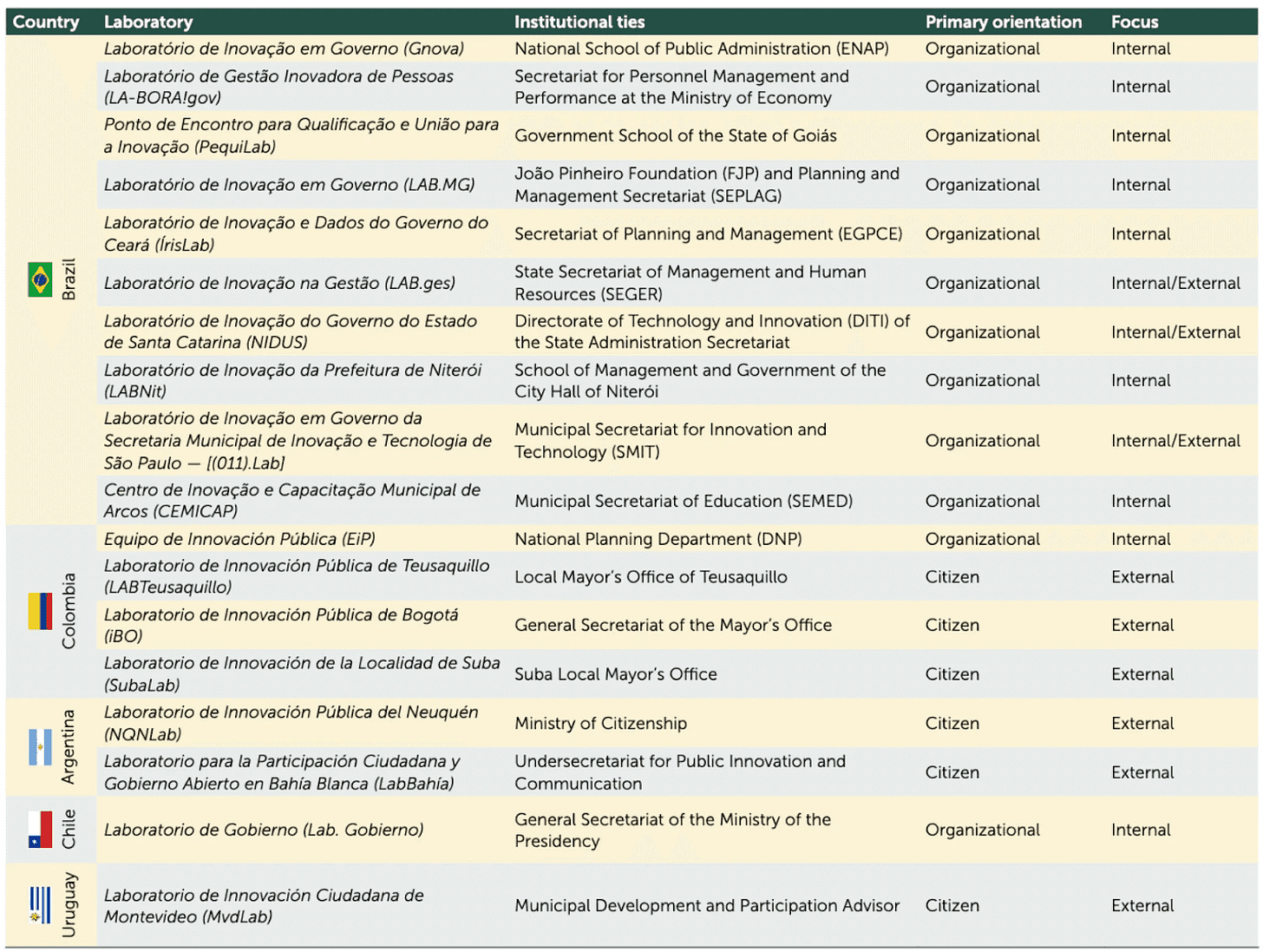 Sano, H. (2020). Laboratórios de Inovação no Setor Público: Mapeamento e diagnóstico de experiências nacionais. ENAP.