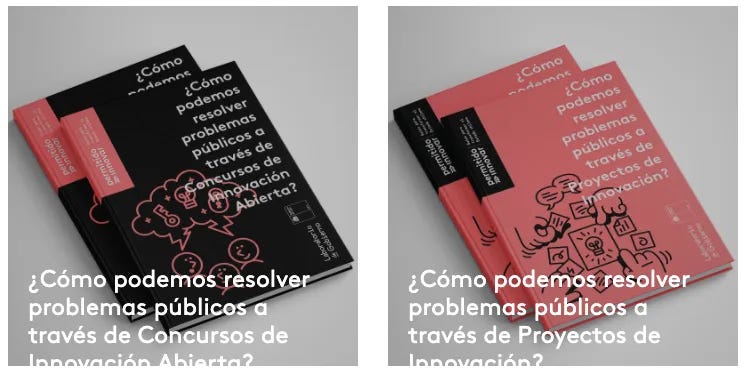 Las dos primeras guías que se publicaron buscaban contestar dos importantes preguntas: 1. ¿Cómo podemos resolver problemas públicos a través de Proyectos de Innovación?, 2. ¿Cómo podemos resolver problemas públicos a través de Concursos de Innovación Abierta?.